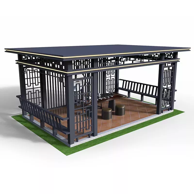 Основное преимущество павильонов в китайском стиле заключается в сочетании «древней архитектурной формы + современной долговечности». Основанный на эстетике традиционной китайской архитектуры, он воспроизводит классические элементы, такие как шпилевые крыши, перевернутые карнизы и подвесные решетки. Соединенный пазовой и шиповой структурой, он сочетает в себе механическую стабильность и культурную текстуру. Основной корпус изготовлен из высококачественной защитной древесины, обработан антикоррозионной защитой под вакуумом и покрыт маслом из древесного воска, которое не только сохраняет естественную текстуру древесины, но также эффективно противостоит влаге, моли и гниению, решая проблему легкого повреждения традиционных деревянных павильонов. Он может сочетать в себе современную технологию армирования, сочетая классический шарм с долгосрочными потребностями в использовании на открытом воздухе, прост в обслуживании и наполнен художественной концепцией.