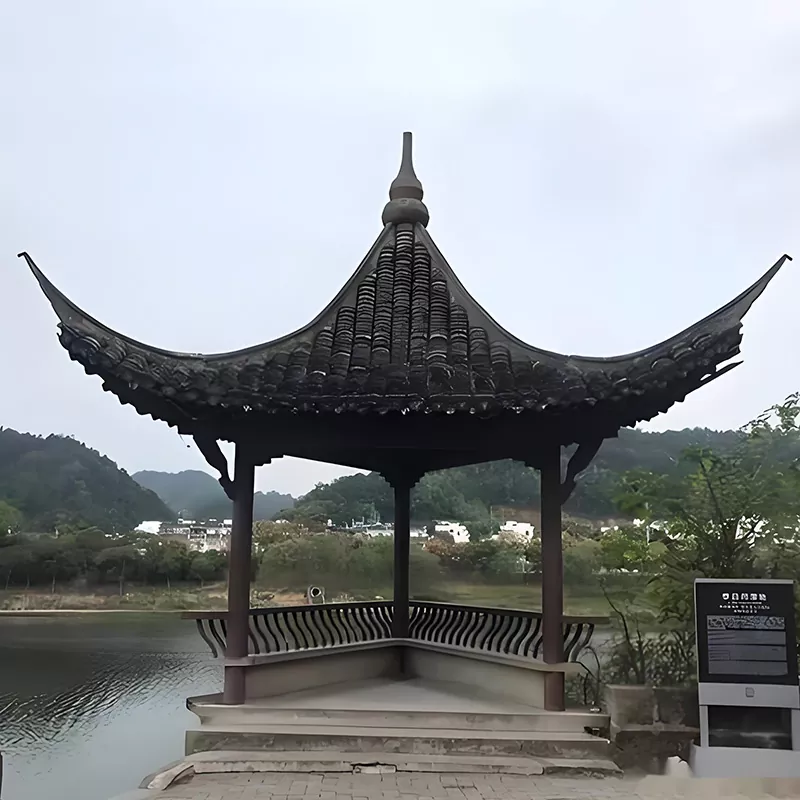 Поддерживает настройку нестандартных размеров (3000–6000 мм), включая классические формы Хуэйчжоу, такие как четырехугольные павильоны со шпилями, шестиугольные павильоны и восьмиугольные павильоны. Варианты древесины включают борнеол, ель, консервирующую сосну и т. д., а типы плитки можно персонализировать с помощью небольших зеленых плиток и цилиндрических плиток. При установке используется бетонное основание для крепления колонн, соединение пазов и шипов на месте, чтобы избежать повреждения шипов при резкой сборке. Крыша уложена профессиональными плиточниками в соответствии с мастерством Хуэйчжоу, чтобы обеспечить плавный дренаж, и в целом сохраняется регулярность и очарование древней архитектуры Хуэйчжоу.