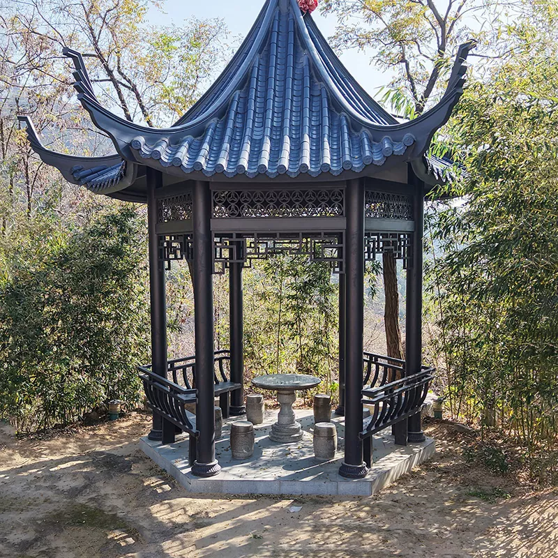 Нестандартные размеры (3000-8000 мм) и классические формы, такие как квадратные, шестиугольные, восьмиугольные и двускатные павильоны, также могут быть изготовлены по индивидуальному заказу. Варианты дерева включают бубинга, ель и вяз, а кровельные материалы можно персонализировать с помощью небольшой зеленой черепицы, трубчатой плитки или глазурованной плитки.